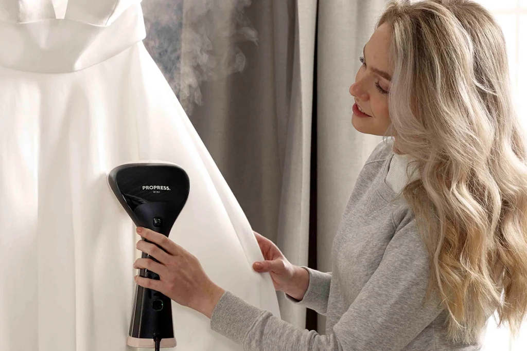 The contact temperature of the Propress MINI is lower than that of a standard iron, making it suitable for a much wider range of fabrics, while the steam itself is less wearing than machine washing.